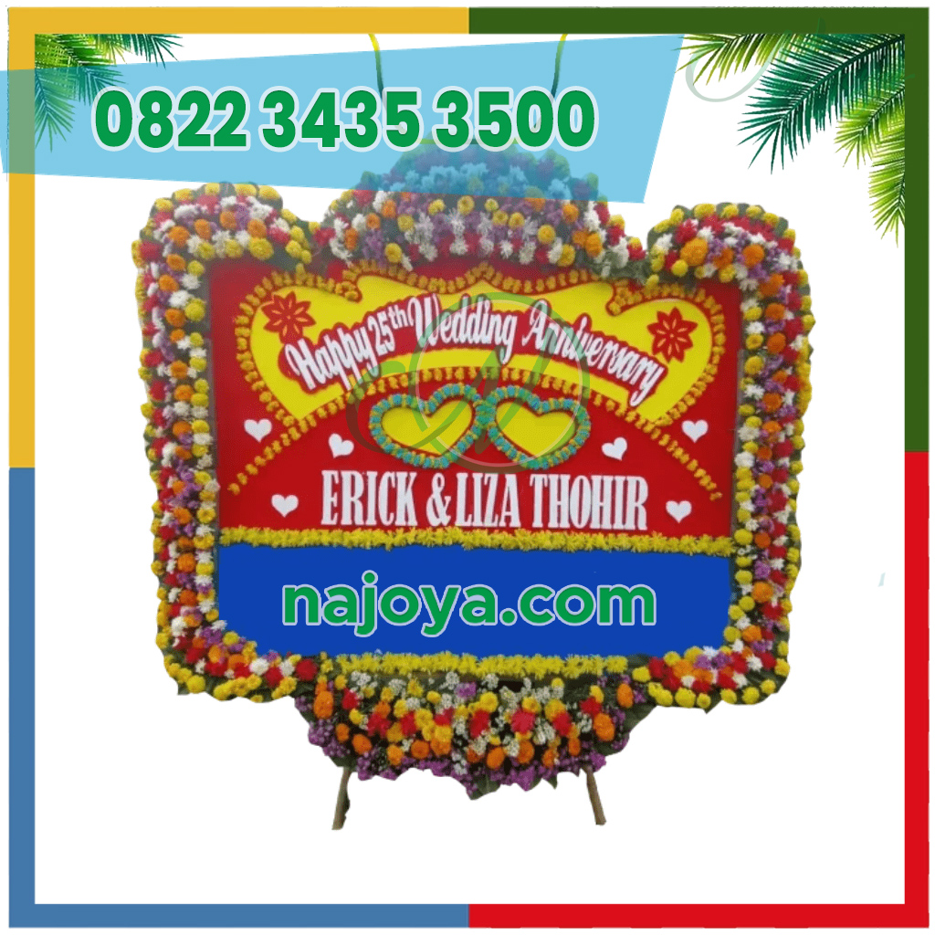 Rayakan momen bahagia yang tak terlupakan dengan Bunga Papan Wedding Clintfan, bunga papan pernikahan yang dirangkai dengan penuh cinta dan ketelitian. Menggunakan bunga-bunga segar pilihan yang dipadukan dalam desain yang harmonis, Bunga Papan Wedding Clintfan hadir untuk menyampaikan ucapan selamat dengan cara yang anggun dan berkesan. Setiap rangkaian didesain untuk menciptakan kesan hangat, meriah, dan istimewa bagi pasangan pengantin di hari bahagianya.