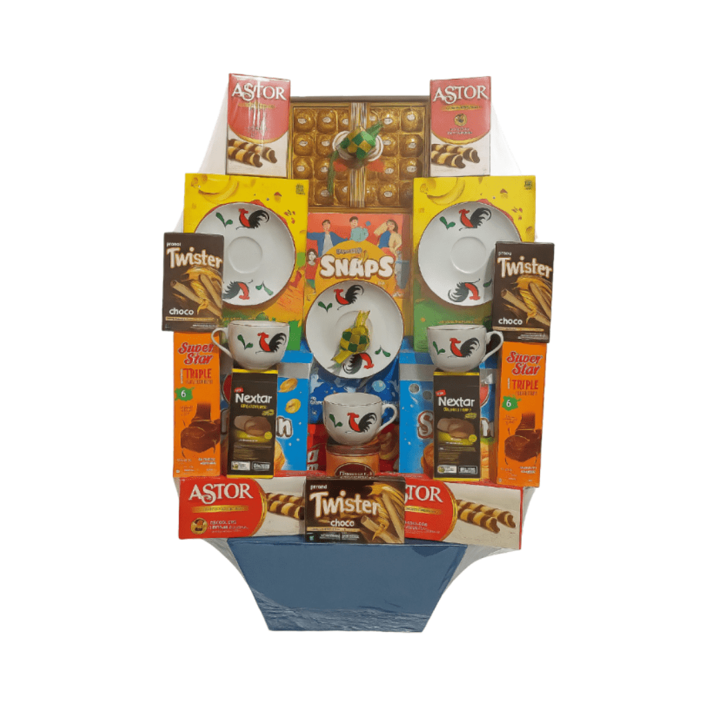 Gabungkan nuansa klasik dan modern dengan Parcel Lebaran Itsnayneid, berisi set piring ayam jago, cangkir motif senada, mangkuk kecil, serta aneka camilan favorit keluarga. Dihiasi dengan pita emas dan ornamen ketupat, parcel ini cocok sebagai hadiah bermakna untuk keluarga, pasangan muda, hingga kolega. Tampil cantik, praktis, dan penuh nostalgia—pilihan tepat untuk mempererat silaturahmi di hari yang fitri.