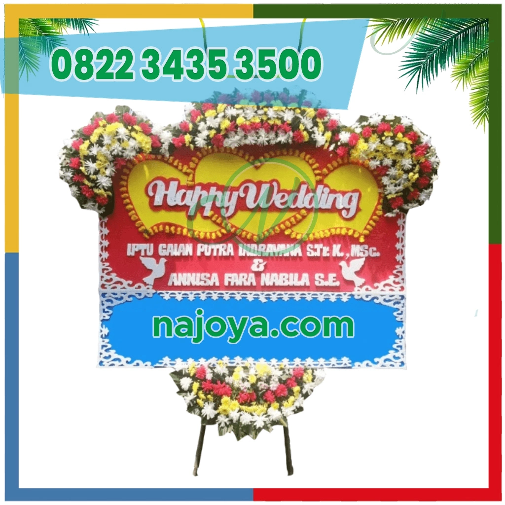 Rayakan momen bahagia yang tak terlupakan dengan Bunga Papan Wedding Rubeson, bunga papan pernikahan yang dirangkai dengan penuh cinta dan ketelitian. Menggunakan bunga-bunga segar pilihan yang dipadukan dalam desain yang harmonis, Bunga Papan Wedding Rubeson hadir untuk menyampaikan ucapan selamat dengan cara yang anggun dan berkesan. Setiap rangkaian didesain untuk menciptakan kesan hangat, meriah, dan istimewa bagi pasangan pengantin di hari bahagianya.