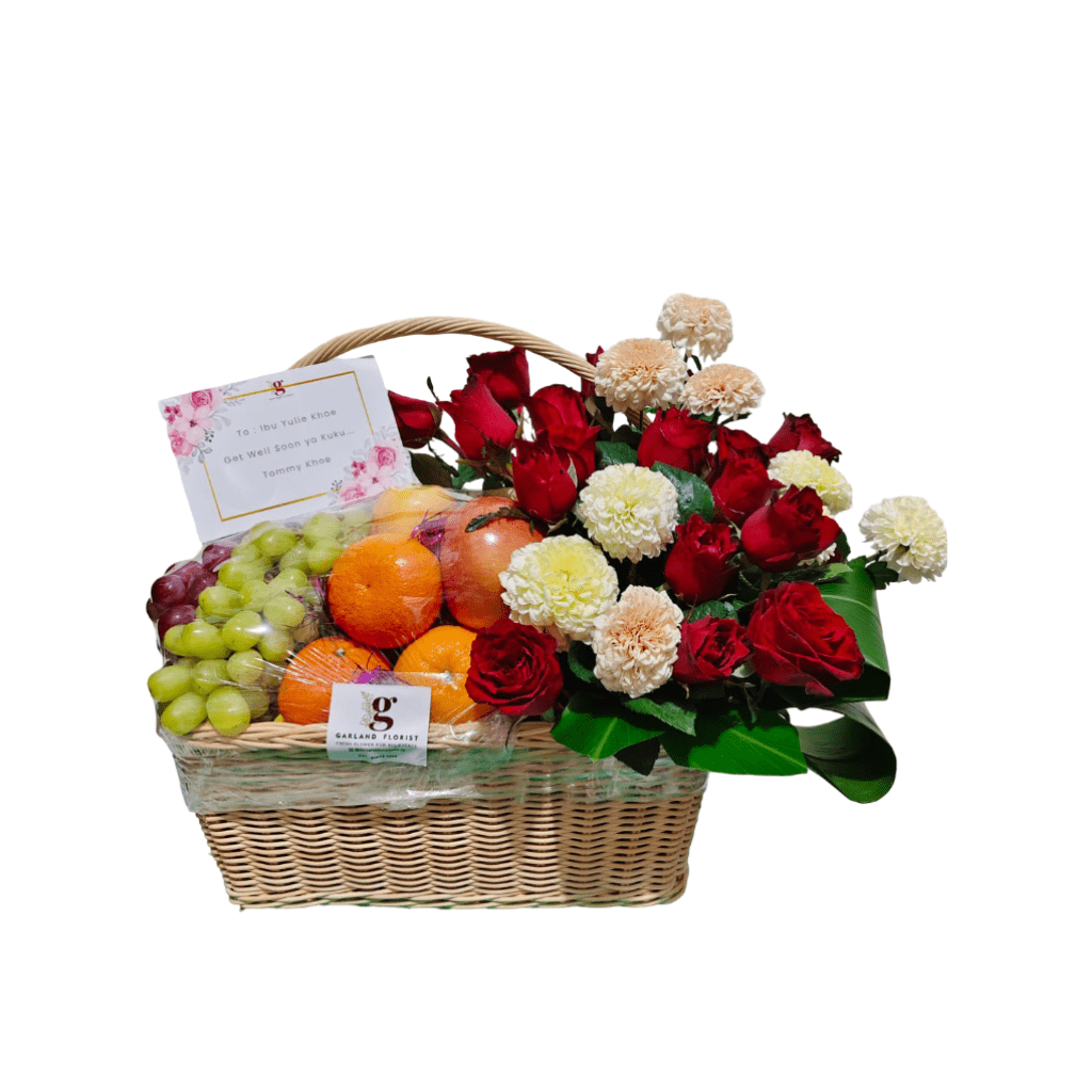 Dikemas dalam keranjang rotan elegan, parcel ini cocok untuk ucapan “get well soon”, hadiah ulang tahun, atau bentuk perhatian kepada orang terkasih. Warna bunga yang hangat berpadu cantik dengan buah berwarna segar, menciptakan kesan mewah namun tetap ramah dan menyentuh.