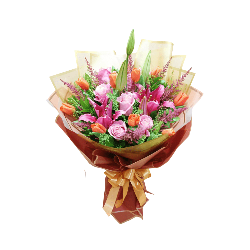 Handbouquet</span> Sylph adalah rangkaian bunga tangan yang memancarkan keanggunan dan kesederhanaan. Fokus pada kombinasi mawar dan krisan pink dan putih, buket ini menciptakan kesan lembut, minimalis, namun berkesan, cocok untuk ucapan selamat, ulang tahun, atau terima kasih tulus.